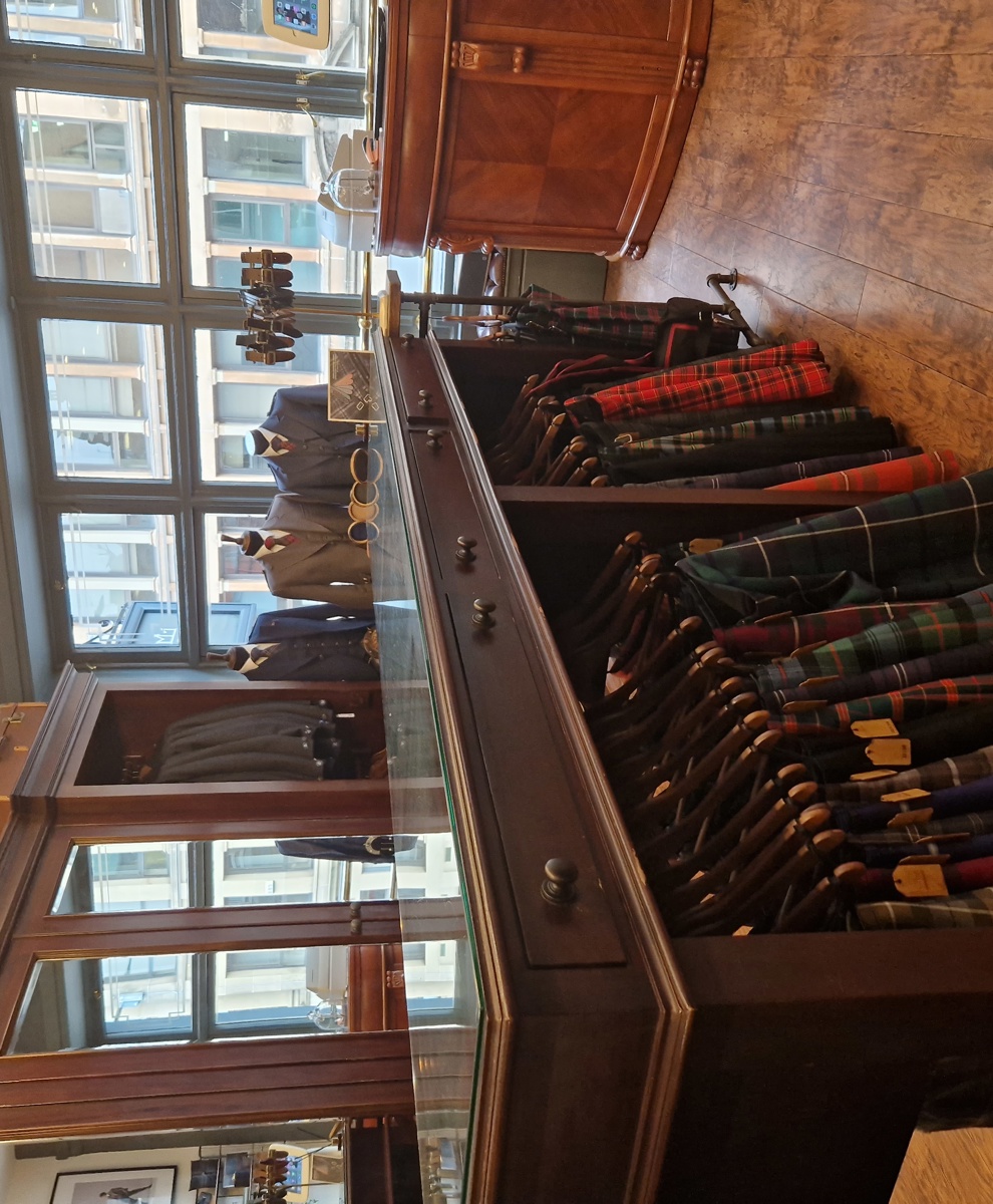 They’re family-run, and the owner took time to explain things like tartan matching rules and jacket types. Expect to pay upwards of £450 for custom kilts, but their reputation for quality is solid.