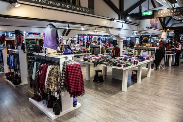 Retail space inside the Tartan Weaving Mill, showcasing various textile products Set right beside Edinburgh Castle, this is more than just a shop it’s a full weaving experience. I've walked through their exhibition several times and always find something new. You can see tartans being woven on industrial looms inside the building, which adds a real sense of craft and history. They have thousands of tartan options and offer both machine-made and custom kilts.
