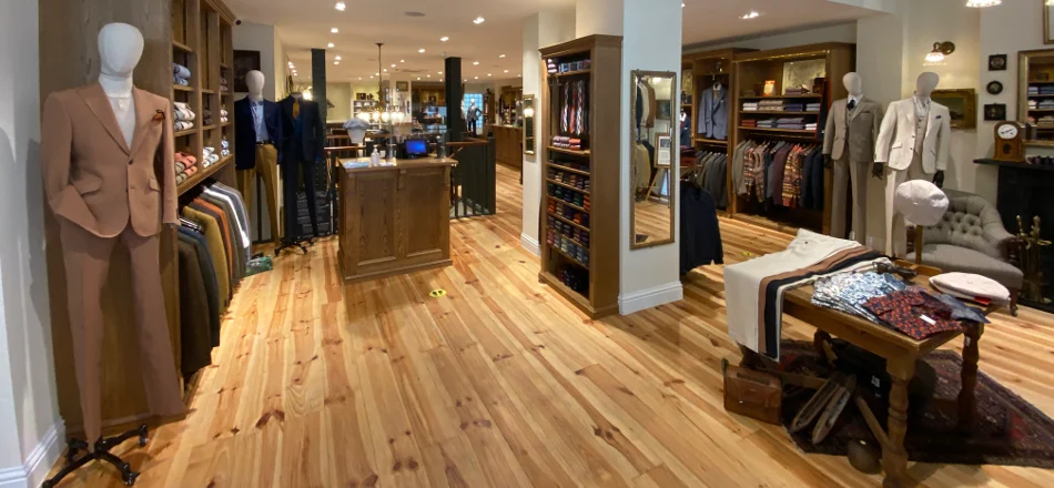 Well-lit retail space of Walker Slater, showcasing traditional and modern menswear with a warm ambiance Walker Slater has become one of my favourite places for tailored Scottish clothing with a modern touch. Their George Street boutique is elegant and welcoming, with beautiful tweed suits, kilts, and jackets arranged by colour and texture. I admire how they’ve blended traditional Highland fabrics with contemporary tailoring ideal if you want something classic but stylish.