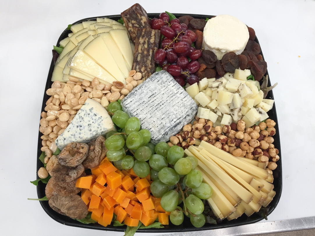 Never put anything on a party platter that isn’t edible; that’s a big no-no. And don’t forget to talk to your cheesemonger! They might have some great suggestions for pairings that go perfectly with the cheeses you picked, and those items might be sitting right there on the shelf behind you.
