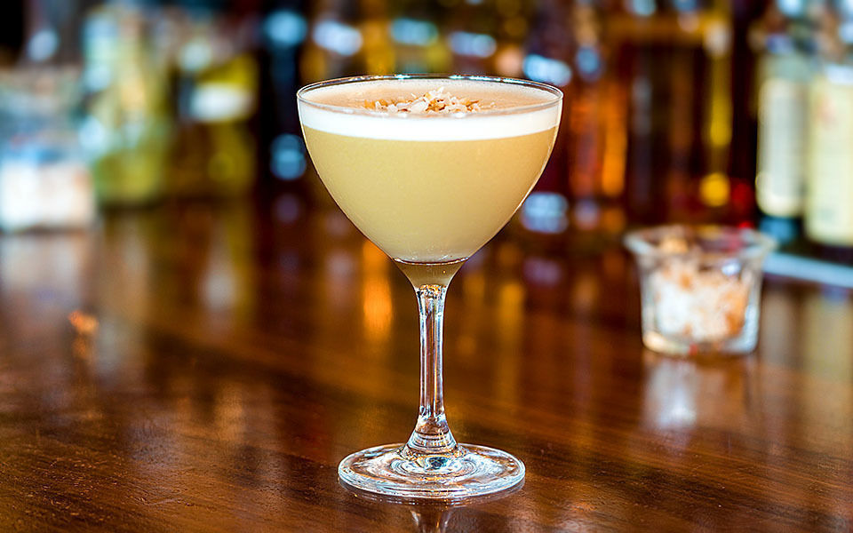 Penicillin isn’t a classic old cocktail. It was invented only about ten years ago by Sam Ross at the famous Milk & Honey bar in New York. But I truly believe it’s one of the best, if not the single best, cocktails to come out of the modern cocktail revival. It’s smoky, spicy, sweet, and perfectly balanced. And it only needs four main ingredients. To make it, muddle a small piece of fresh ginger in a cocktail shaker. Then add the rest of the ingredients, except the smoky Scotch, with ice and shake. Double strain it into a rocks glass filled with ice. Finally, slowly pour the Islay Scotch over the back of a spoon so it floats on top. Garnish with candied ginger.