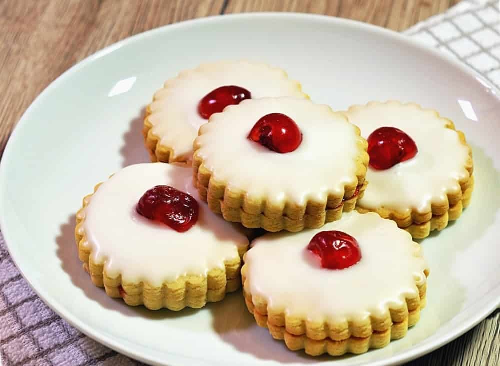 Mary Berry Empire Biscuits recipe This biscuit stacks two buttery shortbread rounds with raspberry jam, topped with white icing and a cherry. Originally named “German biscuit,” its title shifted during World War I due to anti-German feelings.