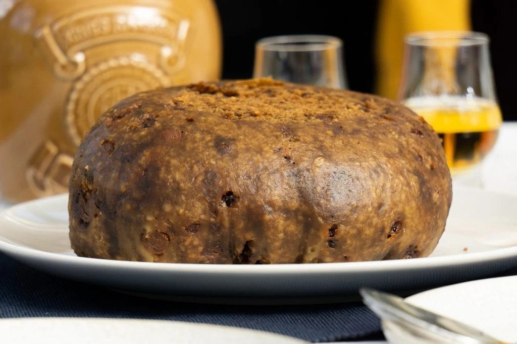 Early versions used just sugar and cream, but modern recipes add milk and butter to avoid burning, showing how traditions adapt for practicality. For those seeking low-sugar snacks for diabetics, modern adaptations now use sugar substitutes like stevia or erythritol, allowing this classic treat to be enjoyed while managing dietary needs. Clootie Dumpling is a dense, fruity pudding steamed in a cloth (“cloot”), a method from pre-oven days. It’s packed with dried fruit, spices, and sometimes treacle, with regional twists like Fife’s treacle addition. Families shape it by smacking the dough, and hidden charms inside bring luck. A winter favorite, it’s tied to Hogmanay and Burns Night, blending food with folklore.